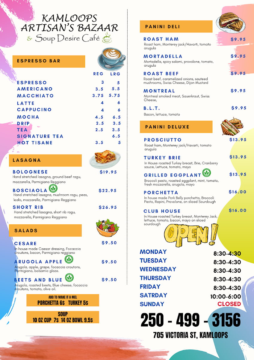 Welcome to the Kamloops Artisans' Bazaar & Soup Desire Cafe, a delightful gem nestled in the vibrant heart of Kamloops, BC. This multifaceted locale is not just a cafe; it’s a celebration of local artistry, community spirit, and of course, outstanding food.